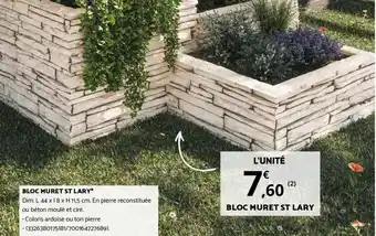 En plus de l'offre BLOC MURET ST LARY, Bricorama propose une large gamme de produits. Consultez le Catalogue Bricorama hebdomadaire pour découvrir les meilleures offres et promotions. En plus de BLOC MURET ST LARY, il y a aussi : BLOC MURET ST LARY, Eda muret volcania & Bloc mensuel m.