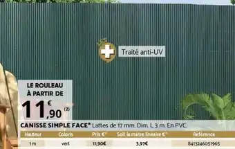 Quand CANISSE SIMPLE FACE sera-t-elle en promotion ? Ou encore : "Est-ce que CANISSE SIMPLE FACE sera en promotion la semaine prochaine ?" C’est une question fréquente. Beaucoup de consommateurs établissent leur liste de courses à l’avance. Pour cette raison, nous mettons en ligne les informations sur les promos à venir dès qu’elles sont connues. Cela vous permet de planifier vos achats et de faire de bonnes affaires. Consultez régulièrement notre site pour savoir si une nouvelle promo sur CANISSE SIMPLE FACE arrive bientôt chez Bricorama.Questions fréquemment posées au sujet de CANISSE SIMPLE FACE