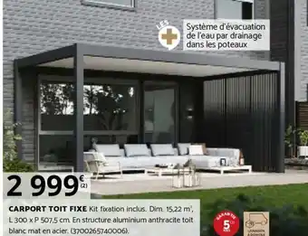 Le prix de l'offre CARPORT TOIT FIXE se trouve également en haut de la page, ainsi que la date à laquelle l'offre est disponible. Vous pouvez également vérifier les prix dans le Catalogue Bricorama actuel ou sur le site Internet de Bricorama. Les offres vous permettent d'acheter les produits Bricorama au prix le plus bas.