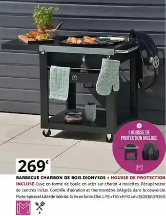 Offre Dim - barbecue charbon de bois dionysos + housse de protection chez Bricorama