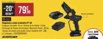 Actuellement en offre chez Bricorama : Élagueuse à main à batterie mt 20 ✅ Valable du 18-02 au 1-03.