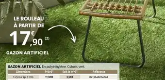 L'offre est disponible dans plusieurs magasins, vérifiez tous les produits pour obtenir le GAZON ARTIFICIEL le moins cher. Si vous souhaitez savoir si l'article est en vente avec une plus grosse remise dans un autre magasin, consultez la catégorie 'Bricolage'. Ces offres pourraient aussi vous intéresser : Gazon artificiel, Gazon artificiel & GAZON ARTIFICIEL.