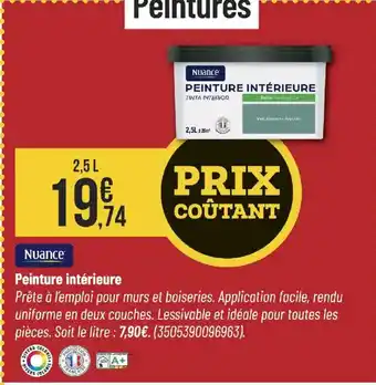 En plus de l'offre NUANCE Peinture intérieure, Bricorama propose une large gamme de produits. Consultez le Catalogue Bricorama hebdomadaire pour découvrir les meilleures offres et promotions. En plus de NUANCE Peinture intérieure, il y a aussi : Peinture intérieure nuance, Facile - peinture intérieure & Peinture façade xtrem acrylique nuance.
