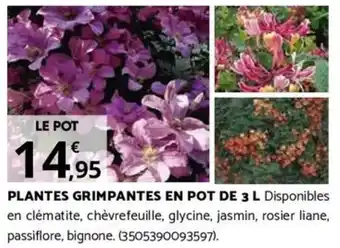 Offre PLANTES GRIMPANTES EN POT DE 3 L chez Bricorama