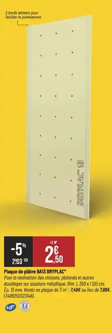 Plaque de plâtre ba13 dryplac 250 x 120 cm