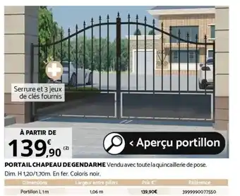 En plus de l'offre PORTAIL CHAPEAU DE GENDARME, Bricorama propose une large gamme de produits. Consultez le Catalogue Bricorama hebdomadaire pour découvrir les meilleures offres et promotions. En plus de PORTAIL CHAPEAU DE GENDARME, il y a aussi : PORTAIL CHAPEAU DE GENDARME, Le chapeau & Chapeau ventilation 100.