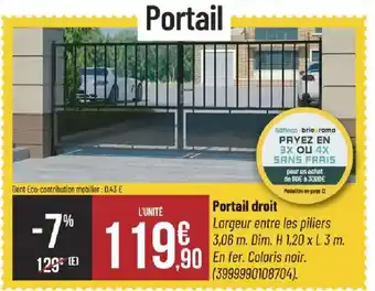 Actuellement en offre chez Bricorama : Portail droit ✅ Valable du 4-03 au 15-03.