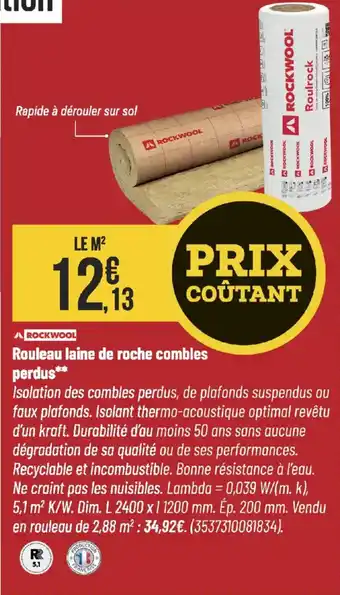 Actuellement en offre chez Bricorama : Rockwool rouleau laine de roche combles perdus ✅ Valable du 18-02 au 1-03.