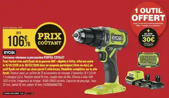 Actuellement en offre chez Bricorama : Ryobi perceuse-visseuse à percussion r18pd2-220sa31 ✅ Valable du 4-02 au 15-02.