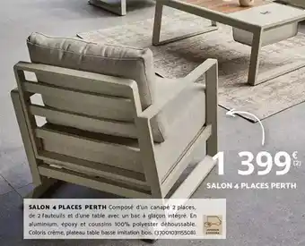 Actuellement en offre chez Bricorama : Salon 4 places perth ✅ Valable du 9-04 au 17-05.