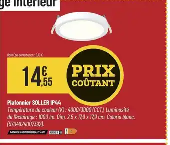 Actuellement en offre chez Bricorama : SOLLER Plafonnier ✅ Valable du 7-01 au 18-01.