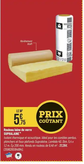 Actuellement en offre chez Bricorama : SUPRALAINE Rouleau laine de verre ✅ Valable du 7-01 au 18-01.
