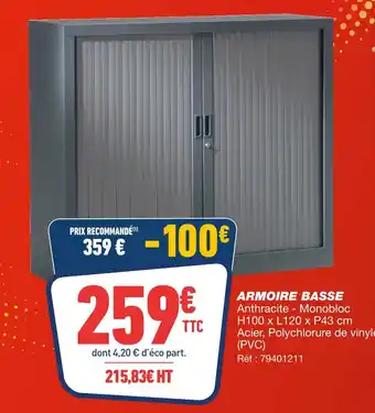 Le prix de l'offre Armoire basse se trouve également en haut de la page, ainsi que la date à laquelle l'offre est disponible. Vous pouvez également vérifier les prix dans le Catalogue Bureau Vallée actuel ou sur le site Internet de Bureau Vallée. Les offres vous permettent d'acheter les produits Bureau Vallée au prix le plus bas.