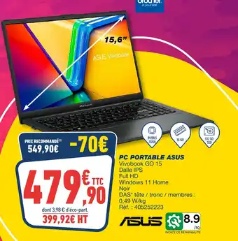 L'offre est disponible dans plusieurs magasins, vérifiez tous les produits pour obtenir le Asus pc portable vivobook go 15 le moins cher. Si vous souhaitez savoir si l'article est en vente avec une plus grosse remise dans un autre magasin, consultez la catégorie 'Office'. Ces offres pourraient aussi vous intéresser : ASUS Pc portable vivobook M1502YA- BQ941W, Ordinateur portable ASUS Vivobook & Asus - pc portable asus m60278q8025w.