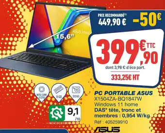 Offre Asus pc portable x1504za-bq1847w chez Bureau Vallée