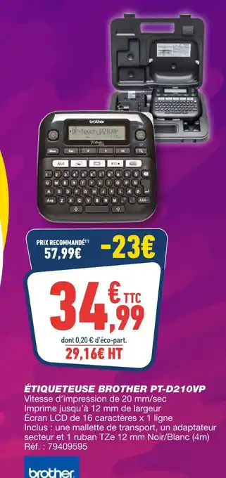Offre Brother étiqueteuse pt-d210vp chez Bureau Vallée