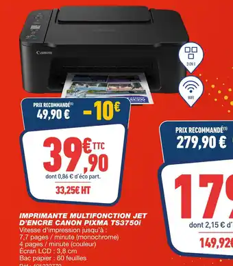 Le prix de l'offre Canon imprimante multifonction jet d'encre pixma ts3750i se trouve également en haut de la page, ainsi que la date à laquelle l'offre est disponible. Vous pouvez également vérifier les prix dans le Catalogue Bureau Vallée actuel ou sur le site Internet de Bureau Vallée. Les offres vous permettent d'acheter les produits Bureau Vallée au prix le plus bas.