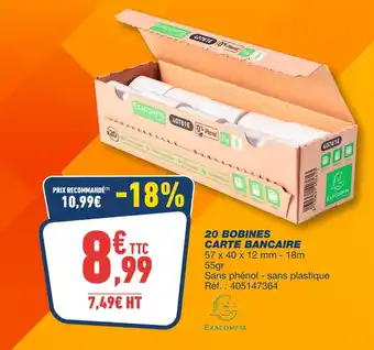 Offre Exacompta 20 bobines carte bancaire chez Bureau Vallée