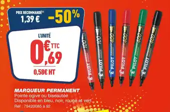 En plus de l'offre Pilot marqueur permanent, Bureau Vallée propose une large gamme de produits. Consultez le Catalogue Bureau Vallée hebdomadaire pour découvrir les meilleures offres et promotions. En plus de Pilot marqueur permanent, il y a aussi : UNI-BALL Marqueur permanent Super Ink Marqueur, Stylo 4 couleurs effacable frixion pilot & PILOT Surligneurs Frixion light natural.