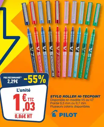 Le prix de l'offre Pilot stylo roller hi-tecpoint se trouve également en haut de la page, ainsi que la date à laquelle l'offre est disponible. Vous pouvez également vérifier les prix dans le Catalogue Bureau Vallée actuel ou sur le site Internet de Bureau Vallée. Les offres vous permettent d'acheter les produits Bureau Vallée au prix le plus bas.