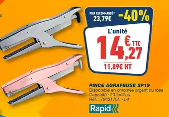Offre Rapid pince agrafeuse sp19 chez Bureau Vallée