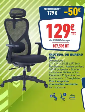 Sun fauteuil de bureau offres et promotions en ligne chez Bureau Vallée