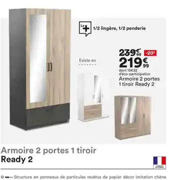 Offre Armoire 2 portes 1 tiroir Ready 2 chez BUT