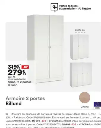 Actuellement en offre chez BUT : Armoire 2 portes Billund ✅ Valable du 15-12 au 23-02.