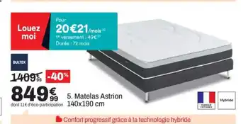 En plus de l'offre BULTEX Matelas Astrion, BUT propose une large gamme de produits. Consultez le Catalogue BUT hebdomadaire pour découvrir les meilleures offres et promotions. En plus de BULTEX Matelas Astrion, il y a aussi : Matelas Astrion, U - matelas astrion & BULTEX Matelas Lunar.