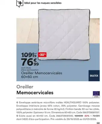 Actuellement en offre chez BUT : BULTEX Oreiller Memocervicales ✅ Valable du 15-12 au 23-02.