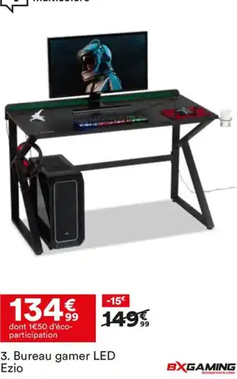 Offre BXGAMING Bureau gamer LED Ezio chez BUT