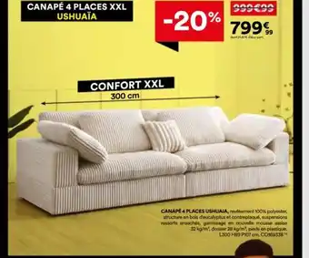 L'offre est disponible dans plusieurs magasins, vérifiez tous les produits pour obtenir le Canapé 4 places ushuaia le moins cher. Si vous souhaitez savoir si l'article est en vente avec une plus grosse remise dans un autre magasin, consultez la catégorie 'Meubles & Décoration'. Ces offres pourraient aussi vous intéresser : Canapé 2 places, Canapé 3 places Louis & Canapé livia 2 places.