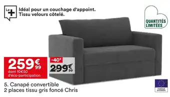 Actuellement en offre chez BUT : Canapé convertible 2 places tissu gris foncé chris ✅ Valable du 2-12 au 1-01.