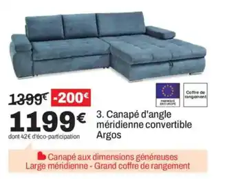 L'offre est disponible dans plusieurs magasins, vérifiez tous les produits pour obtenir le Canapé d'angle méridienne convertible le moins cher. Si vous souhaitez savoir si l'article est en vente avec une plus grosse remise dans un autre magasin, consultez la catégorie 'Meubles & Décoration'. Ces offres pourraient aussi vous intéresser : Canapé d'angle méridienne convertible, Canapé d'angle convertible méridienne Cottage & Canapé convertible méridienne Jo.