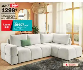 Actuellement, Canapé d'angle rangement convertible Flocca est en promotion chez BUT. Toutes les informations utiles comme le prix, les conditions et la durée de validité sont affichées sur cette page. Consultez également les promotions similaires pour Canapé d'angle rangement convertible Flocca, afin de faire le meilleur choix. La promo Canapé d'angle rangement convertible Flocca est valable du 03-02-2026 au 02-03-2026. Si elle est expirée, regardez les autres offres équivalentes. Vous pouvez aussi suivre cette catégorie de produit pour être alerté lorsqu’une nouvelle promotion Canapé d'angle rangement convertible Flocca apparaît chez BUT.Questions fréquemment posées au sujet de Canapé d'angle rangement convertible Flocca
