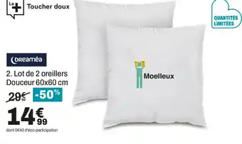 DREAMÉA Lot de 2 oreillers Douceur 60 x 60 cm