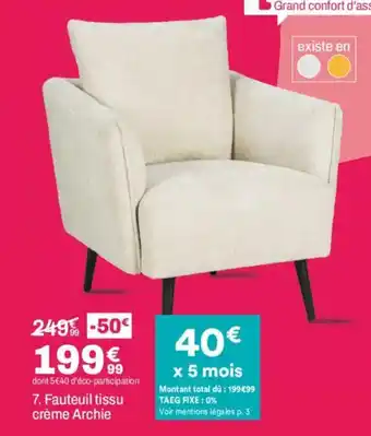 Actuellement en offre chez BUT : Fauteuil tissu crème Archie ✅ Valable du 3-02 au 2-03.