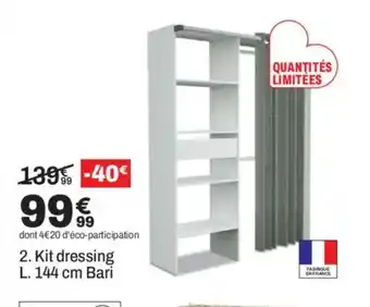 L'offre est disponible dans plusieurs magasins, vérifiez tous les produits pour obtenir le Kit dressing le moins cher. Si vous souhaitez savoir si l'article est en vente avec une plus grosse remise dans un autre magasin, consultez la catégorie 'Meubles & Décoration'. Ces offres pourraient aussi vous intéresser : Kit dressing, KIT DRESSING TANGO & Kit dressing chester.