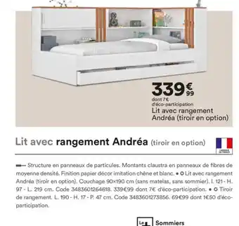 Offre Lit avec rangement Andréa (tiroir en option) chez BUT