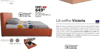L'offre est disponible dans plusieurs magasins, vérifiez tous les produits pour obtenir le Lit coffre Victoria le moins cher. Si vous souhaitez savoir si l'article est en vente avec une plus grosse remise dans un autre magasin, consultez la catégorie 'Meubles & Décoration'. Ces offres pourraient aussi vous intéresser : Lit Victoria, Lit coffre Best & Lit coffre Brooklyn.