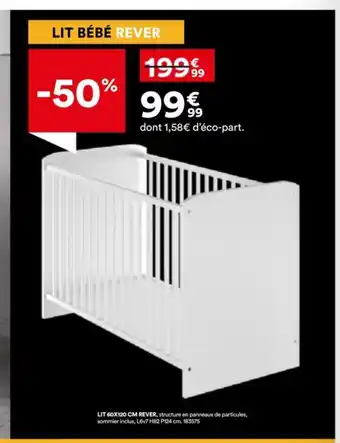 Le prix de l'offre Lit rever se trouve également en haut de la page, ainsi que la date à laquelle l'offre est disponible. Vous pouvez également vérifier les prix dans le Catalogue BUT actuel ou sur le site Internet de BUT. Les offres vous permettent d'acheter les produits BUT au prix le plus bas.