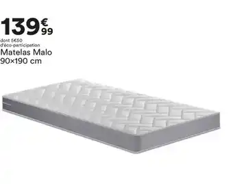 L'offre est disponible dans plusieurs magasins, vérifiez tous les produits pour obtenir le Matelas Malo le moins cher. Si vous souhaitez savoir si l'article est en vente avec une plus grosse remise dans un autre magasin, consultez la catégorie 'Meubles & Décoration'. Ces offres pourraient aussi vous intéresser : Malo mousse, Mousse malo & DREAMÉA Maatelas Malo.