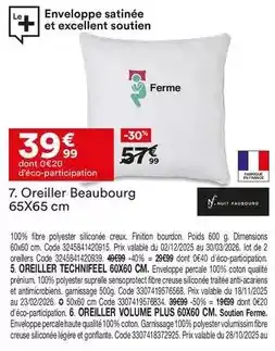 Actuellement en offre chez BUT : Oreiller beaubourg ✅ Valable du 2-01 au 19-01.