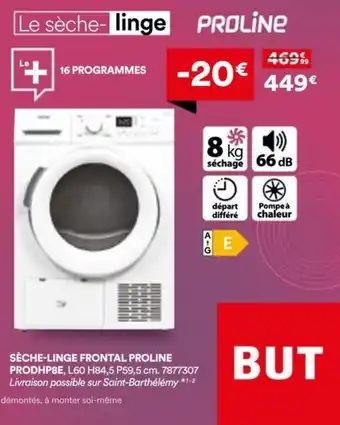 Actuellement en offre chez BUT : PROLINE Sèche-linge frontal PRODHP8E ✅ Valable du 31-01 au 1-03.