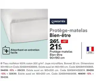 Actuellement, Protège-matelas Bien-être est en promotion chez BUT. Toutes les informations utiles comme le prix, les conditions et la durée de validité sont affichées sur cette page. Consultez également les promotions similaires pour Protège-matelas Bien-être, afin de faire le meilleur choix. La promo Protège-matelas Bien-être est valable du 15-12-2025 au 23-02-2026. Si elle est expirée, regardez les autres offres équivalentes. Vous pouvez aussi suivre cette catégorie de produit pour être alerté lorsqu’une nouvelle promotion Protège-matelas Bien-être apparaît chez BUT.Questions fréquemment posées au sujet de Protège-matelas Bien-être