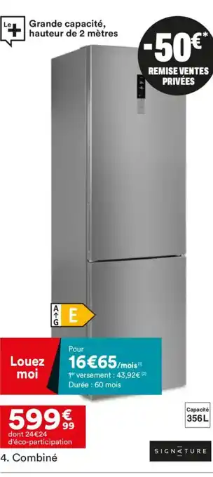 L'offre est disponible dans plusieurs magasins, vérifiez tous les produits pour obtenir le SIGNATURE Combiné le moins cher. Si vous souhaitez savoir si l'article est en vente avec une plus grosse remise dans un autre magasin, consultez la catégorie 'Meubles & Décoration'. Ces offres pourraient aussi vous intéresser : SIGNATURE Four micro-ondes combiné, SIGNATURE Four micro-ondes combiné & SIGNATURE Lave-vaisselle.