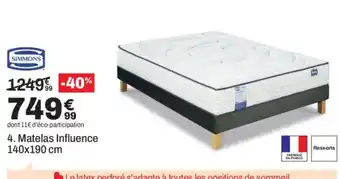 En plus de l'offre SIMMONS Matelas Influence, BUT propose une large gamme de produits. Consultez le Catalogue BUT hebdomadaire pour découvrir les meilleures offres et promotions. En plus de SIMMONS Matelas Influence, il y a aussi : Matelas Influence, SIMMONS Matelas Fitness & SIMMONS Matelas Fitness.