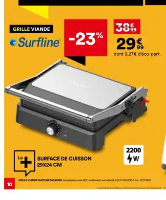 Le prix de l'offre SURFLINE Grille-viande MGS2200 se trouve également en haut de la page, ainsi que la date à laquelle l'offre est disponible. Vous pouvez également vérifier les prix dans le Catalogue BUT actuel ou sur le site Internet de BUT. Les offres vous permettent d'acheter les produits BUT au prix le plus bas.