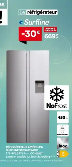 SURFLINE Réfrigérateur américain SBSS450WDIX offres et promotions en ligne chez BUT