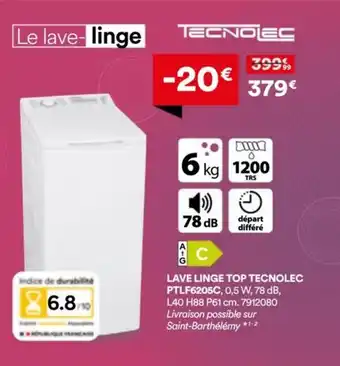 TECNOLEC Lave linge top PTLF6205C : offres et promos BUT à découvrir